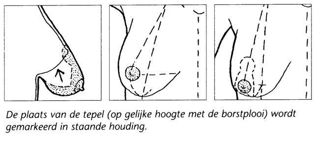 De plastisch chirurg tekent voorafgaand aan de operatie af waar het litteken komt. Meestal loopt het litteken rond de tepel naar beneden en in de borstplooi. Vóór en 3 maanden na de operatie worden medische foto’s gemaakt voor in jouw dossier.