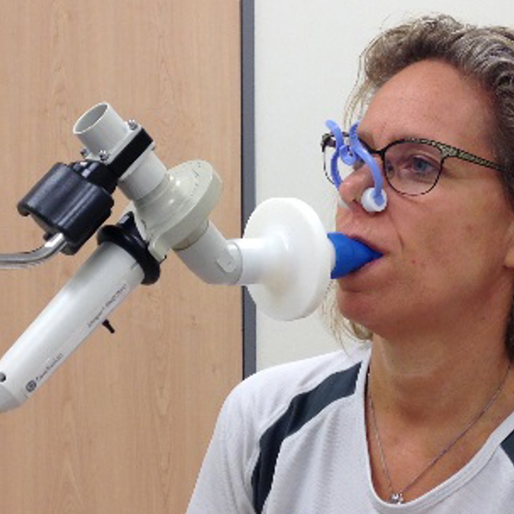 Bij de spirometrie meten we hoeveel lucht u maximaal kunt in- en uitademen. Ook meten we hoe hard u kunt uitblazen. Daarnaast meten we de doorgankelijkheid van uw luchtwegen. Wij vragen aan u om een aantal keren krachtig uit te blazen en helemaal leeg te blazen.