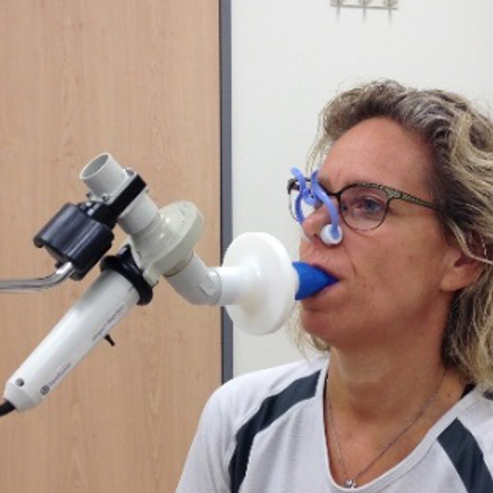 Bij de spirometrie meten we hoeveel lucht u maximaal kunt in- en uitademen. Ook meten we hoe hard u kunt uitblazen. Daarnaast meten we de doorgankelijkheid van uw luchtwegen.