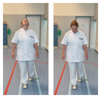 Als u de loopoefeningen gaat doen zorg, dan dat u in een veilige omgeving oefent. Let hierbij op de ondergrond en eventueel verkeer.